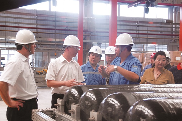 8月15日,西藏拉萨市党组副书记、副市长暴剑一行到我司参观考察。暴剑副市长一行参观了医用氧气呼吸器展品和铝内胆全缠绕复合气瓶加工车间,充分了解了产品的性能、参数和加工生产过程,对产品的轻质、高压、外观等先进特性和生产现场规范化管理、生产设备先进性及产品加工质量给予高度评价,并明确表达了合作意向,同时邀请控股公司尽快组织相关人员赴西藏对项目进行考察。控股公司总经理王国华也明确表示,希望天海公司和拉萨市相关企业充分利用各自的资源和优势,合作共赢,为将来提高西藏地区的旅游业服务水平,改善藏区人民的生活水平共同努力,为藏区人民谋福祉,为首都人民争荣耀。